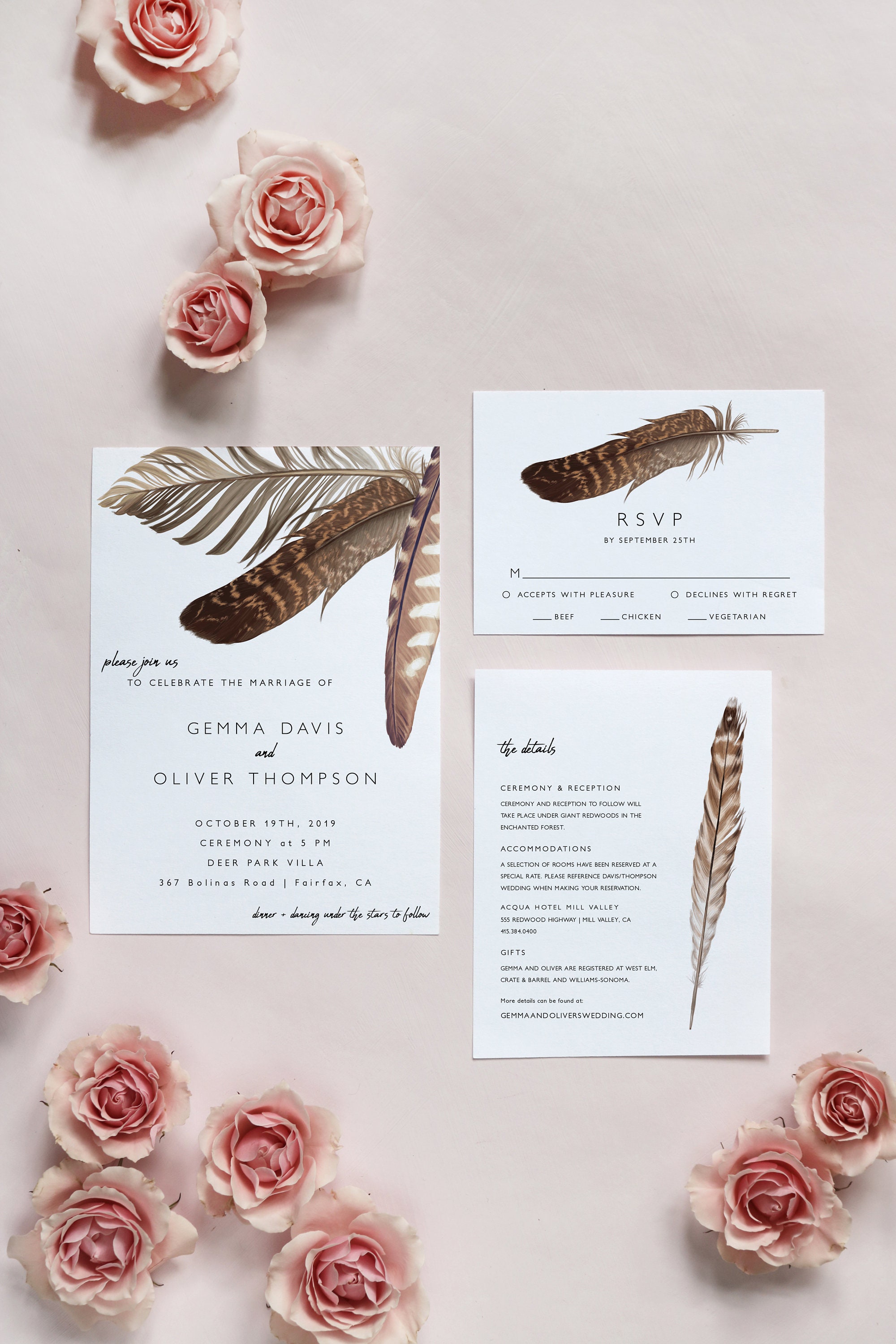 Boho Feather Wedding Invitation Set Editable Template Modern Etsy